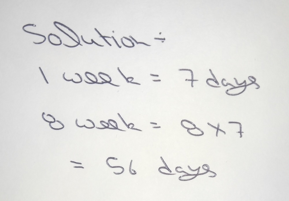 'weeks'), the counting direction (e.g. * the 28 day method to count elapsed months: See full list on convertoctopus.com A day is the approximate time it takes for the earth to complete one rotation. What is 15 weeks in days? It is defined as exactly 86,400 seconds. 'from') and pick the starting day (e.g. 15 d → t (wk) solve the above proportion to obtain the time t in weeks: Therefore, 15 weeks is equal to 15 x 7 = 105 days. There are 7 days in one week. '15'), select the period (e.g. See full list on convertoctopus.com 15 wk to d conversion.